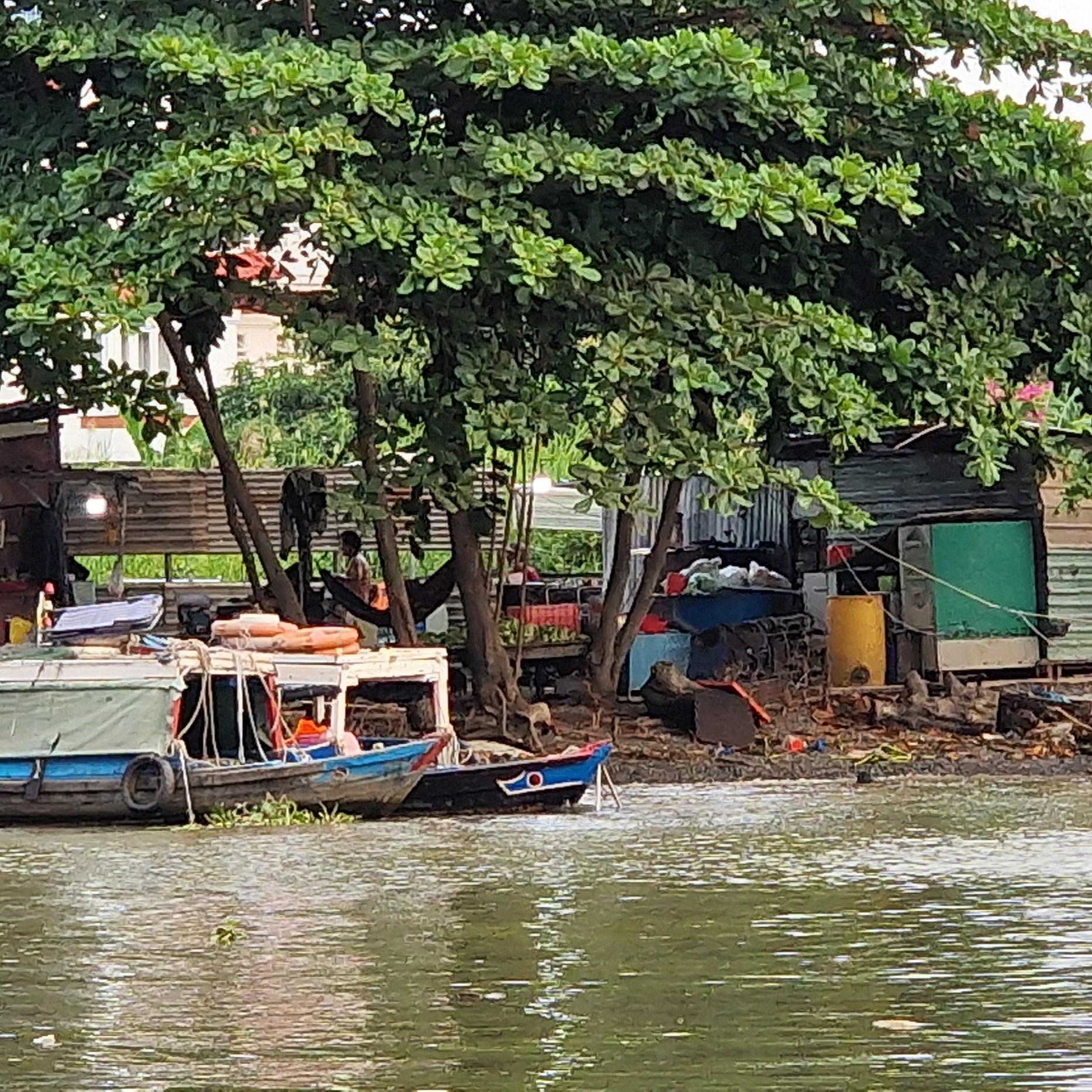 Despite this, it was on the river tour that I realised that Saigon is a city of great contrast. Vietnam’s rapid, less than half a century rise from a struggling war-torn nation to one of the high-potential countries on Asia’s exciting economic scene has picked up many to riches, but left many others behind. This was very clear in District Two. An exceptionally green area of the city, modern expensive-looking apartment blocks rise from the trees. Our guide told us that most rooms cost between 500k and 1m US dollars. Yet on the river front, people live a much simpler life in tiny wooden shacks with little rowing boats, which are dwarfed by the huge wooden ship that houses a 5-star restaurant on the District One side of the river.